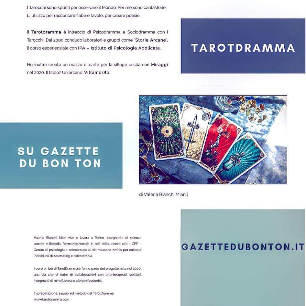 Qualche giorno fa sulla curatissima e preziosa Gazette du bonton è uscito un articolo sul mio Tarotdramma®.