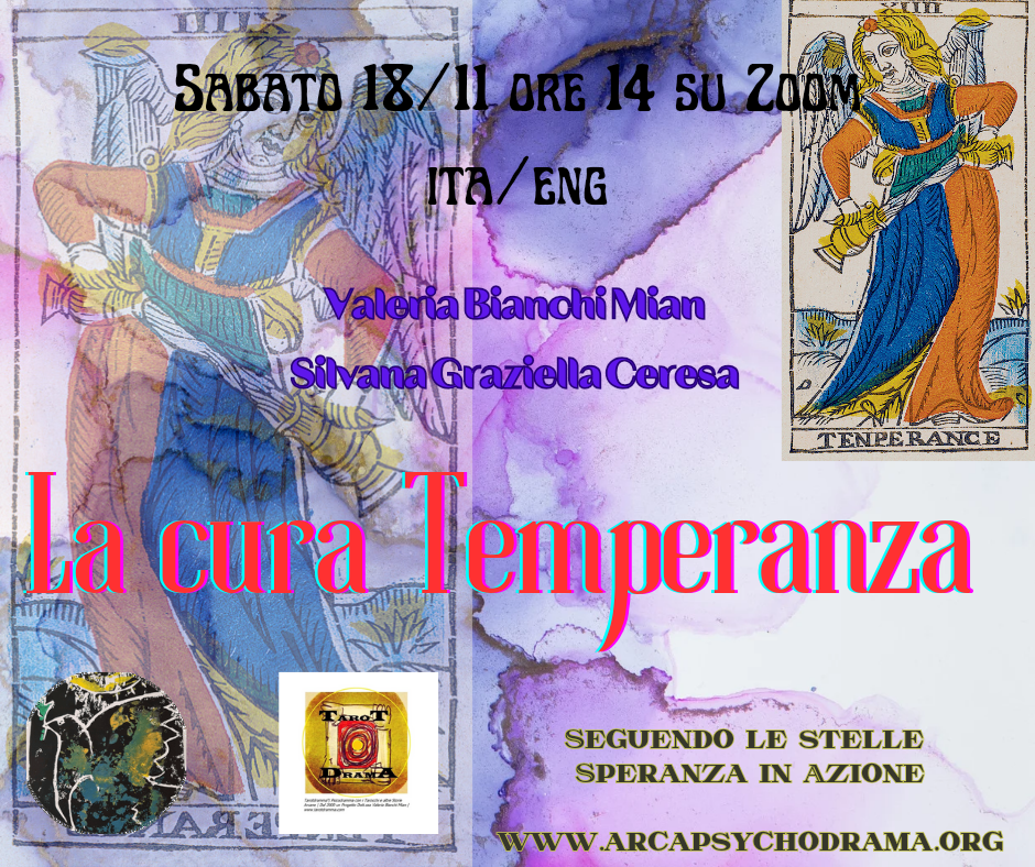 Con Silvana Graziella Ceresa condurrò il workshop “La cura Temperanza” con il Metodo Tarotdramma: Tarot Therapy Italia e riflessioni junghiane il sabato 18 alle ore 14,00. Per iscriversi, contattatemi al 3332544620 via Whatsapp o alla mail tarotdramma@gmail.com, dopo esservi segnati sul sito.