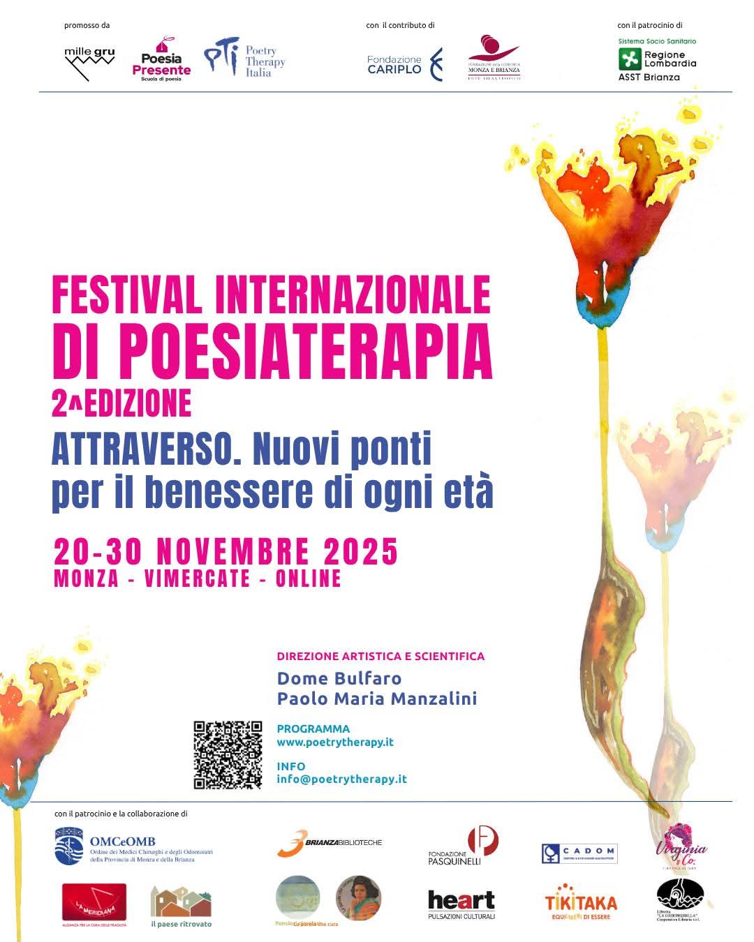 Seconda edizione del Festival Internazionale di Poesiaterapia: 20 e 21 novembre (anteprime) e dal 27 al 30 novembre a Monza, Vimercate (MB) e online.